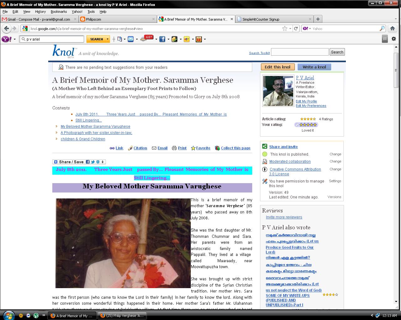 This is a brief memoir of my mother ‘Saramma Verghese’ (85 years) who passed away on 8th July 2008.