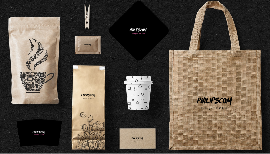Here are some samples developed by this amazing logo maker called the Designhill logo maker by using my website name, Philipscom. Once the logo is ready you can place the logo on a variety of products. See a few examples we made by using the website name.