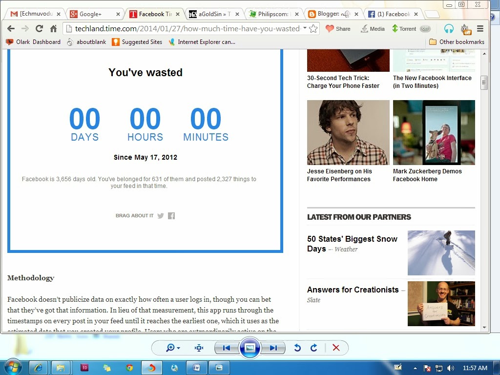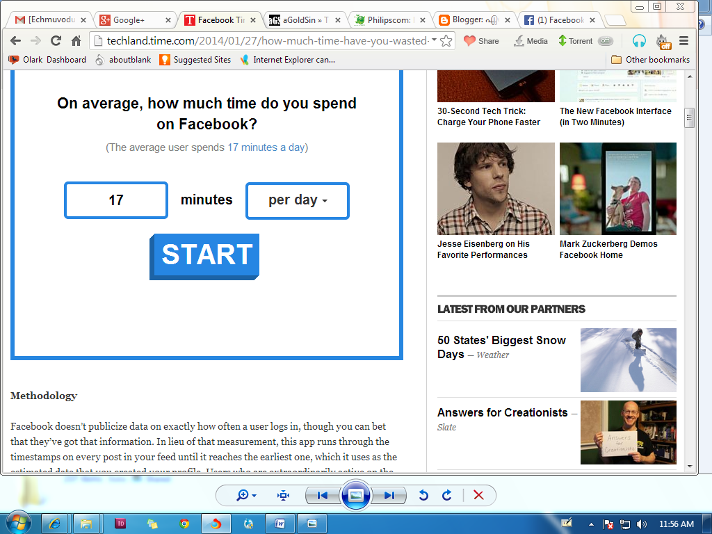 Time Magazine’s Techland.time brought out an article under the section ‘Social Networking’ under the title: “How Much Time Have You Wasted on Facebook?” Read more: Facebook Time Machine: