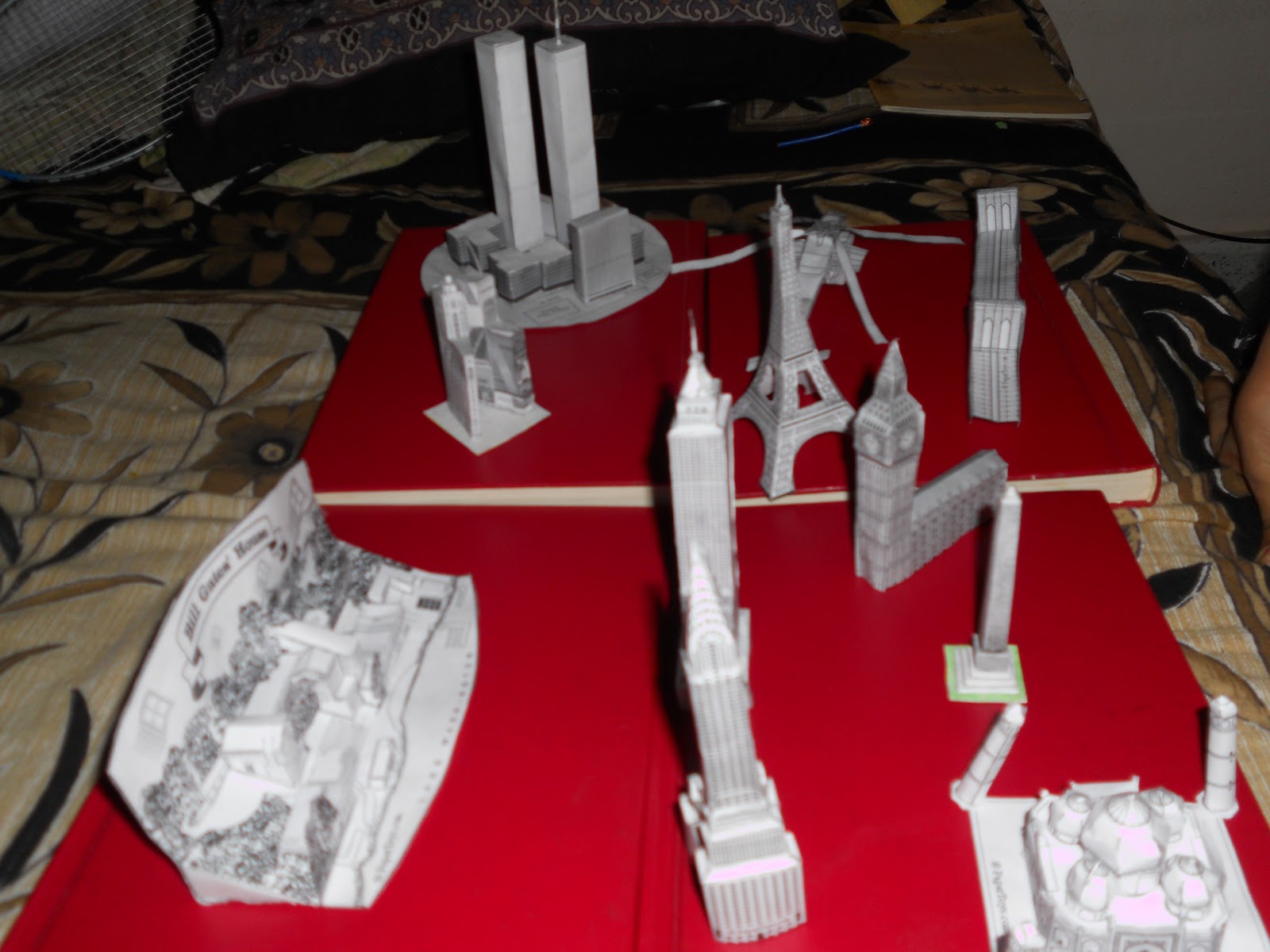 I see such wonderful and intricate paper architecture by your son.He has even made the difficult Taj Mahal! I made an enlarged version of the Taj from canon website for my daughters school project and it took me a week…your little master is very talented indeed!