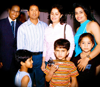 | During the shoot of the Great Indian Dream ad film, Sachin Tendulkar with his wife Anjali and children Arjun and Sara with Arindam Chaudhuri, Rajita Chaudhuri and their son Che Kabir Chaudhuri! |