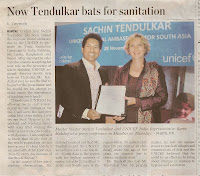 Yes, Sachin now bats for sanitation. The UNICEF named Tendulkar as their regional brand ambassador to promote its Total Sanitation Campaign in India, Pakistan, Sri Lanka, Bangladesh, and Nepal.