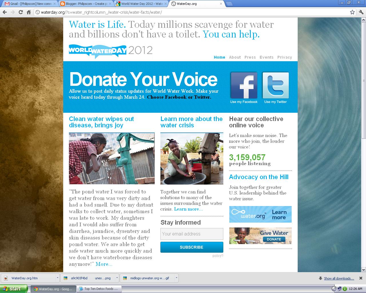 Let us utilize this week to make known (Donate our Voices) about the serious crisis and how to alert people and overcome this crisis.Also Please Watch This Water Documentary Video by BlacklightPropagandaAlso Please Read This Related Blog at This Link Philipscom: